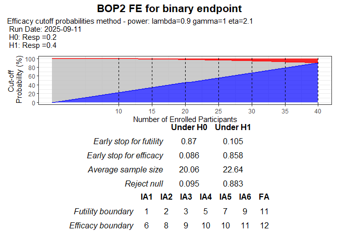 #> Efficacy boundary (CR) 6 6 7 8 9 9 10