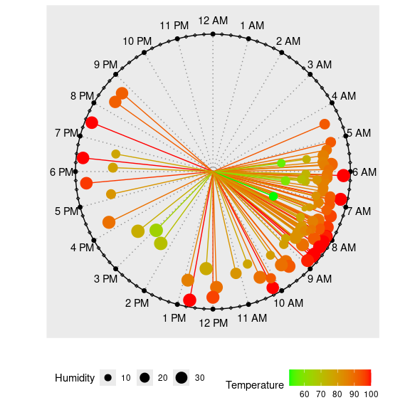 clock_chart_qnt(acdt, time = Time, len = Humidity..., Col = Temperature.F.) +